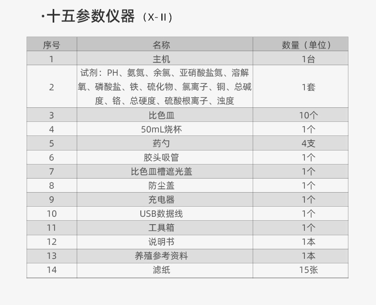 专业应用于检测水产养殖水质指标的专业仪器 12项检测指标(余氯 亚硝S酸盐 氨氮 溶解氧等等)涵盖了水产养殖中水质检测的基本要求。该仪器主要优点数据准确、操作简单是国内目前水产养殖行业内性价比较高的便携式水质分析仪。它为科学的精细化水产养殖提供了最直接的工具。